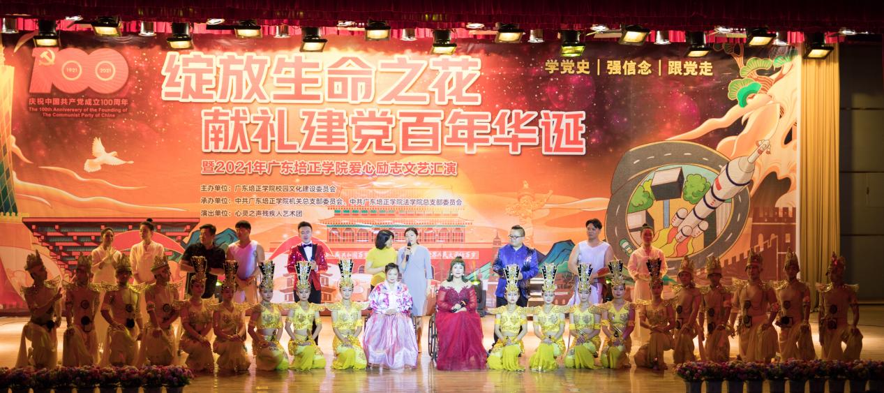 本次活动是广东培正学院文化素质教育大讲堂第48讲,由广东培正学院校园文化建设委员会主办,中共广东培正学院机关总支部委员会、中共广东培正学院法学院总支部委员会联合承办。整场演出,以中国共产党的成立、成长,新中国的日益强盛为主线,为广大师生呈现了一场美轮美奂、直抵心灵的视听盛宴。讴歌了党的峥嵘岁月和丰功伟绩,增强了师生的荣誉感、使命感,激励广大师生继承和发扬党的光荣传统,不忘初心、牢记使命。同时,弘扬了残疾同胞自信自立、顽强拼搏的精神,也延续广东培正学院扶残、助残的优良传统。